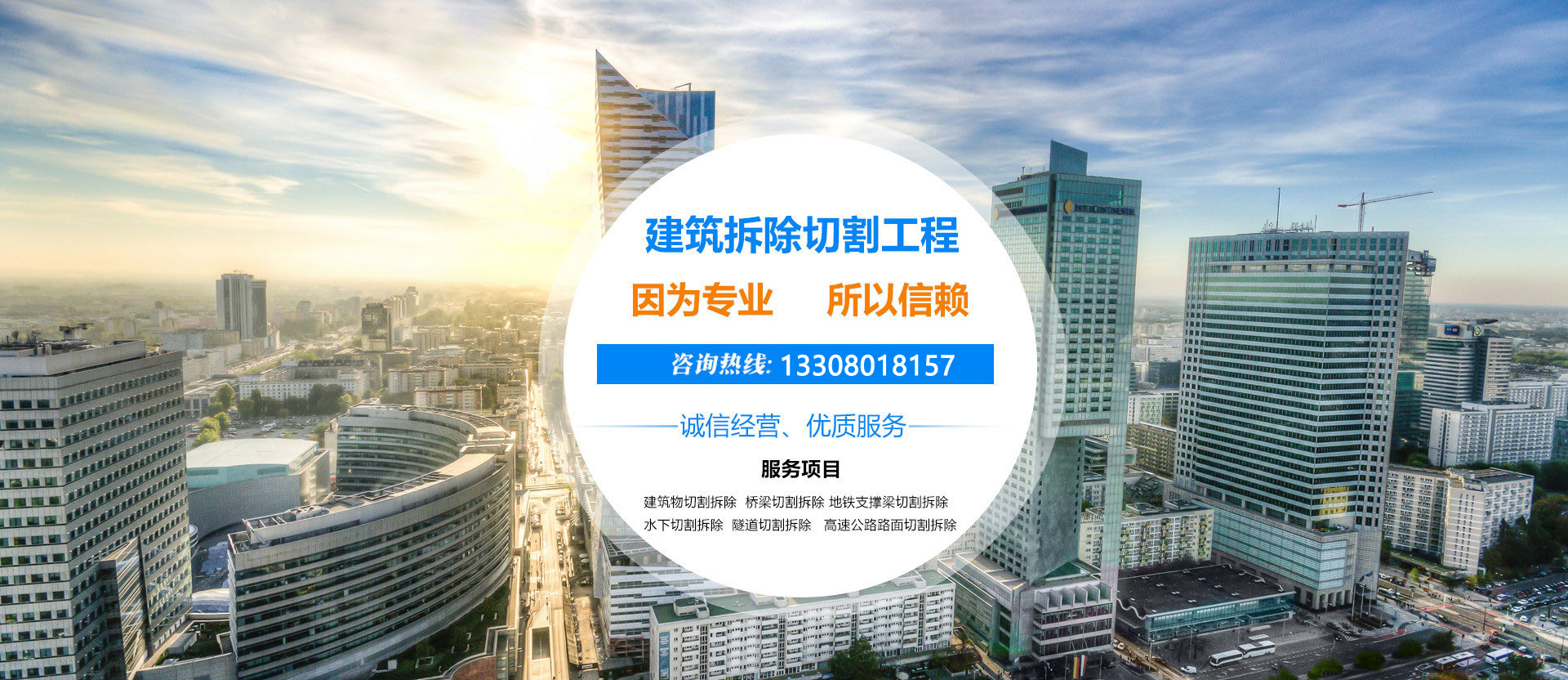 專業承接建筑物切割拆除、橋梁切割拆除、地鐵支撐梁切割拆除、水下切割拆除、隧道切割拆除、高速公路路面切割拆除等工程的鋼筋混凝土切割施工